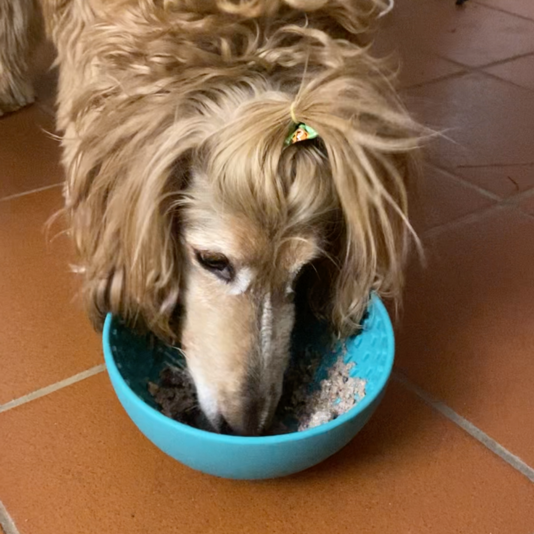 Il mio cane mangiava troppo velocemente e spesso si soffocava. Con il lickmat si prende il suo tempo e sembra più tranquillo.